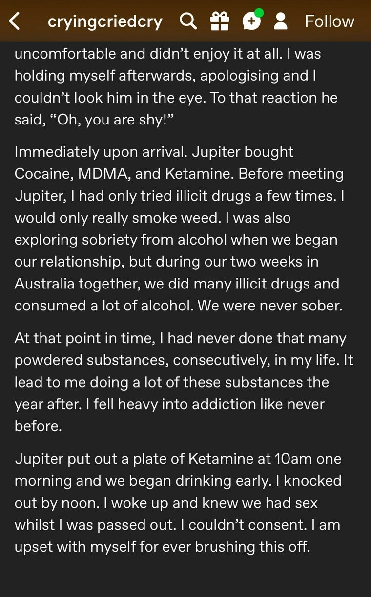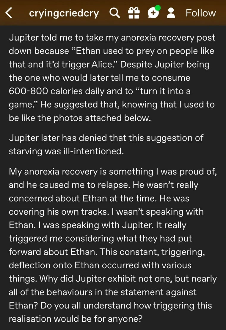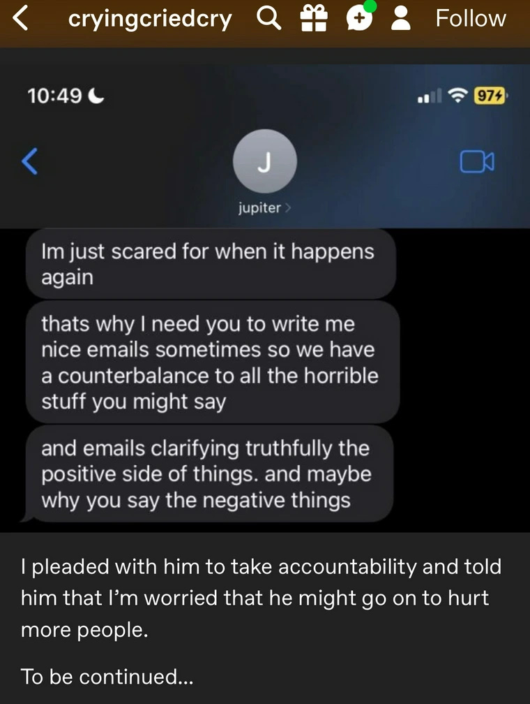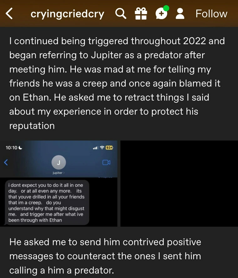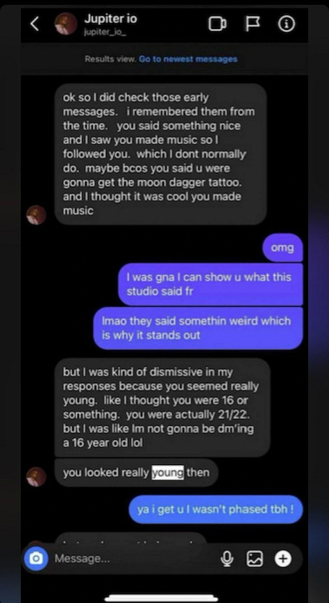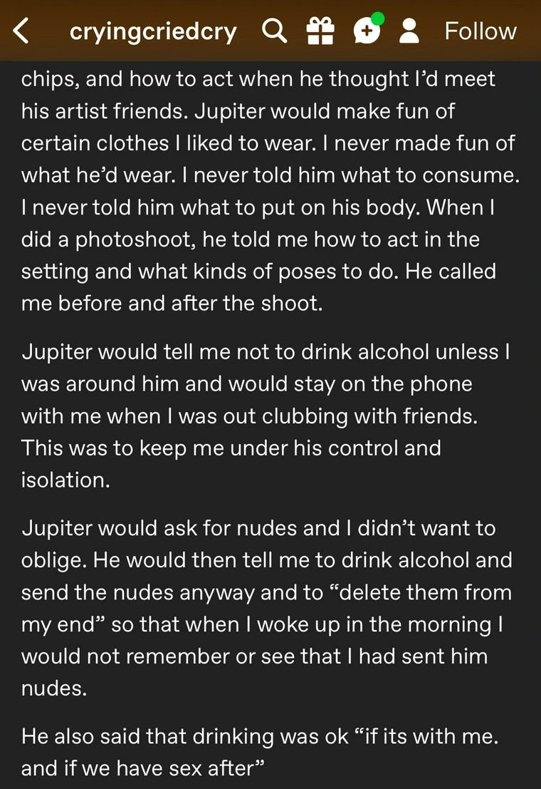 (Messages of Shan ‘counterbalancing’ were later released by Jupiter Keyes on his instagram as his defense against these allegations)