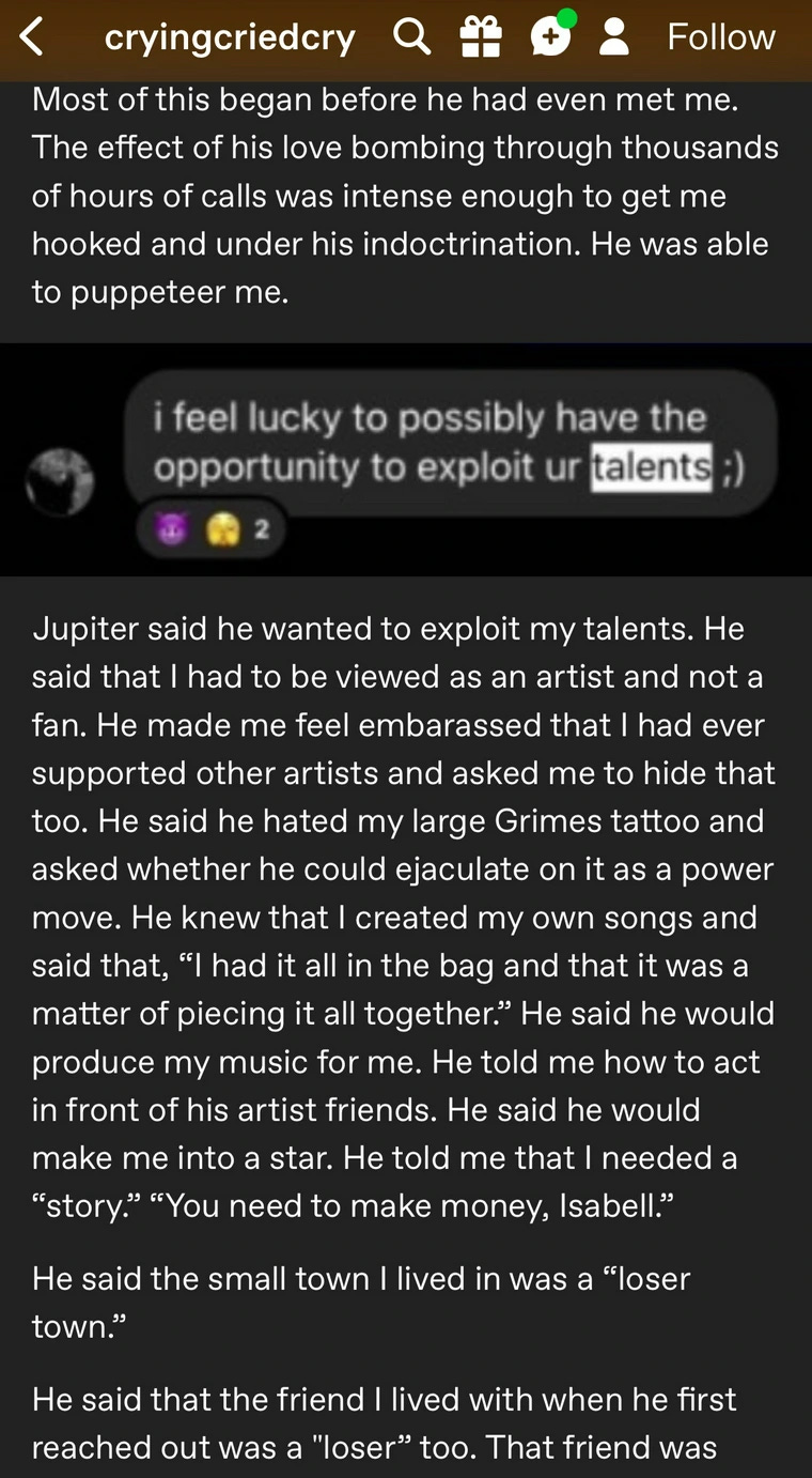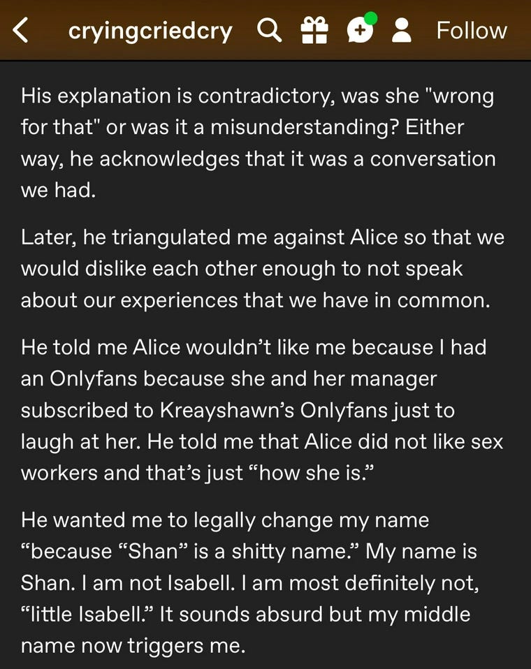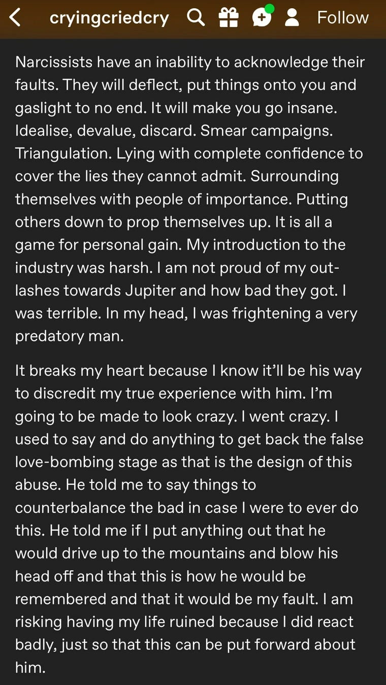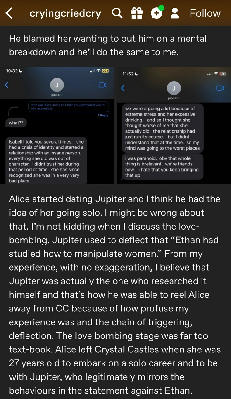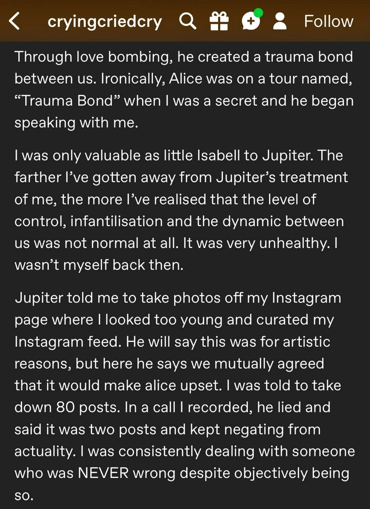 (Messages of Shan ‘counterbalancing’ were later released by Jupiter Keyes on his instagram as his defense against these allegations)