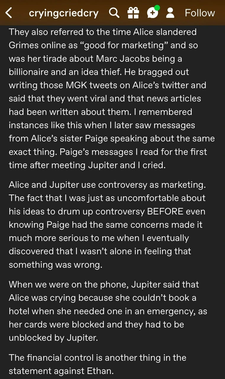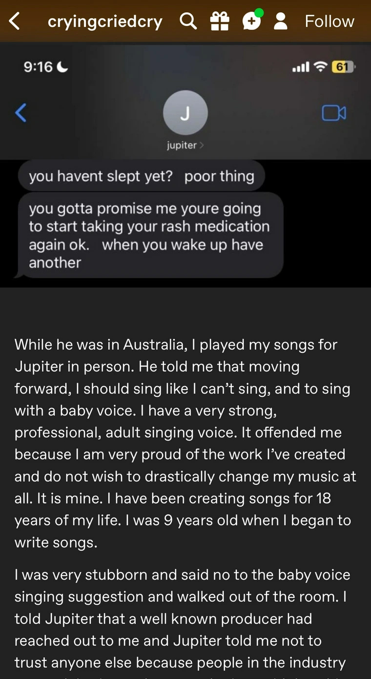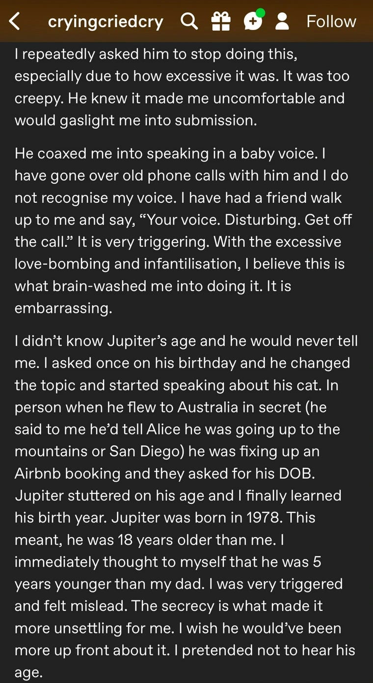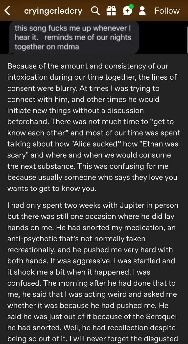 (Messages of Shan ‘counterbalancing’ were later released by Jupiter Keyes on his instagram as his defense against these allegations)