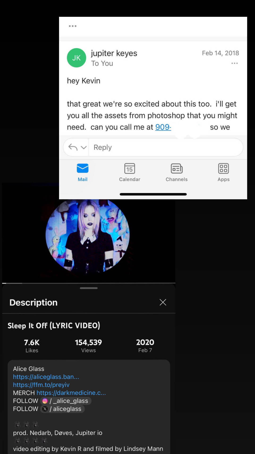 As time passed I got closer to them and because they liked my editing style so much I had the opportunity to do some freelance editing and graphic designing work for Alice. I accepted their requests because I wanted to help Alice in anyway that I could, even though I had never edited professionally or intended to do so ever. At first they paid me but over time the projects I worked on turned into 'favours' in their eyes, I gradually started feeling like they were taking advantage of how much I could help them in any way possible, as the later projects came at nothing but the cost of my time. We would either face-time, call or email each other to communicate during the creation of these projects, the strange fact is that other than to say “hello” Alice was never present. She wasn't there to give commands, express her opinions or give ideas for her own projects that we were working on, Jupiter was in control of the artistic decisions and by his command, everything was created in his vision.